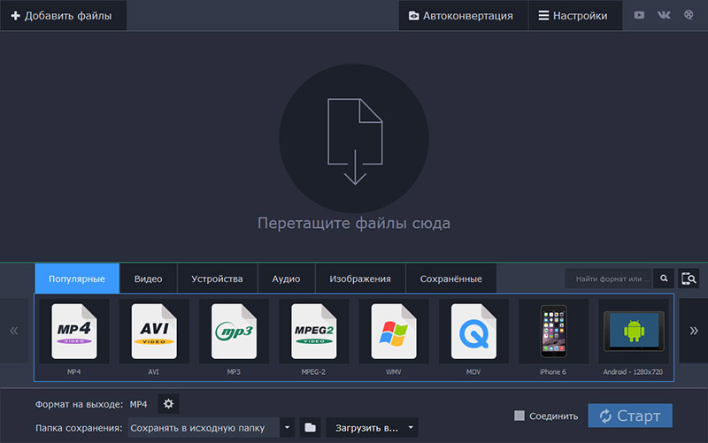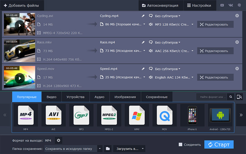 Movavi Конвертер Видео – простая в использовании программа для изменения формата любых медиафайлов.