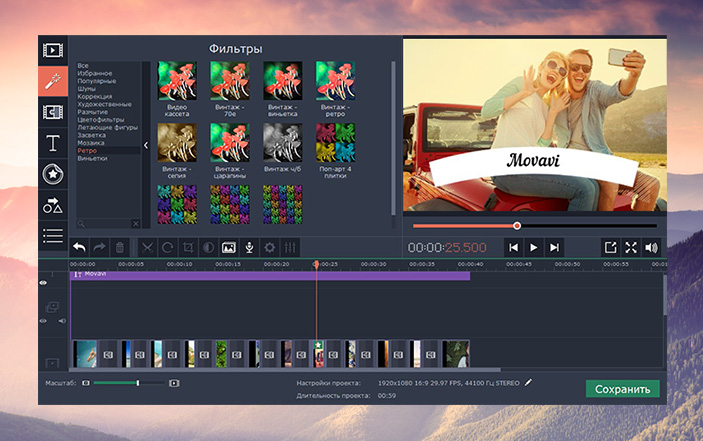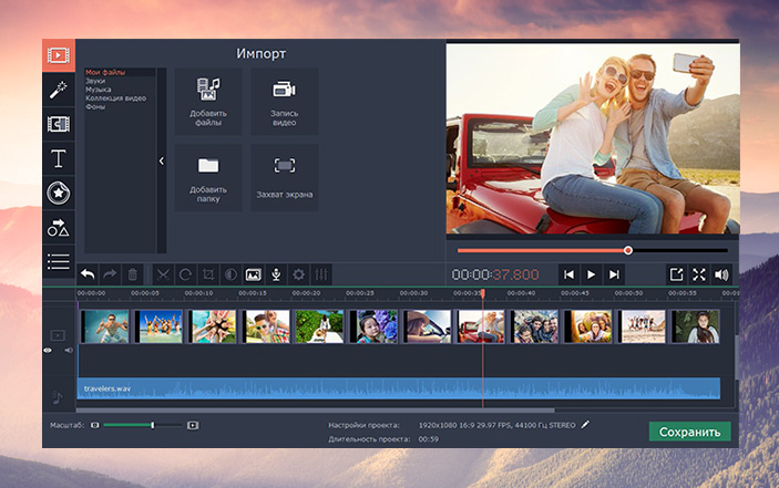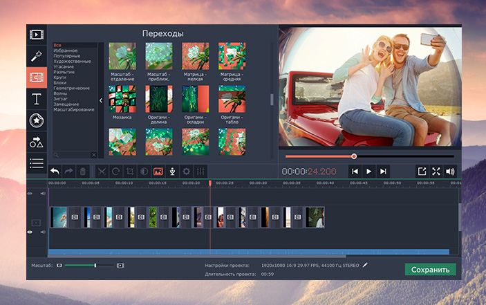 В Movavi Видеоредакторе для Mac есть все, что нужно для быстрого видеомонтажа на Mac, удобной нарезки видео и создания красочных слайд-шоу из фотографий.