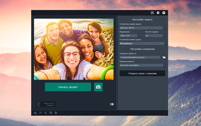 - записывайте видео с веб-камеры или ТВ-тюнера