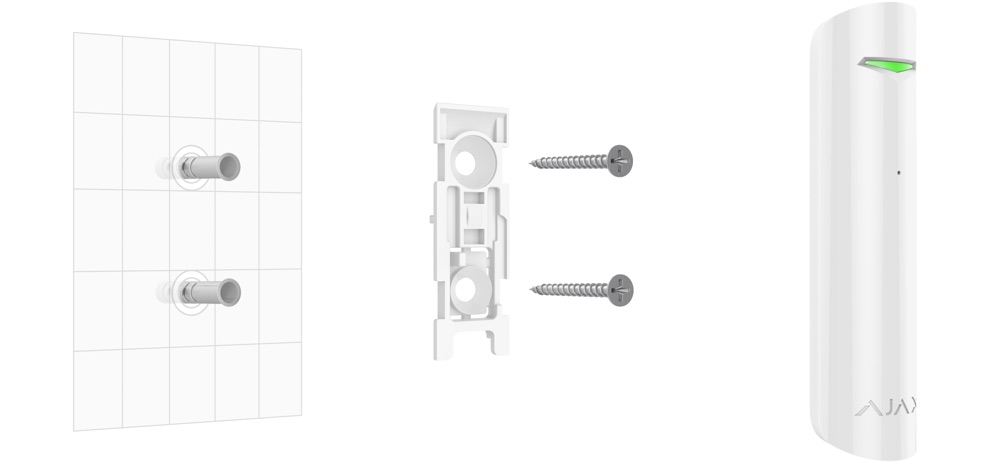Миниатюрный беспроводной датчик сообщает о разбитии стекла. Устанавливается на расстоянии до 9 метров от окна и отфильтровывает события, провоцирующие ложные тревоги.